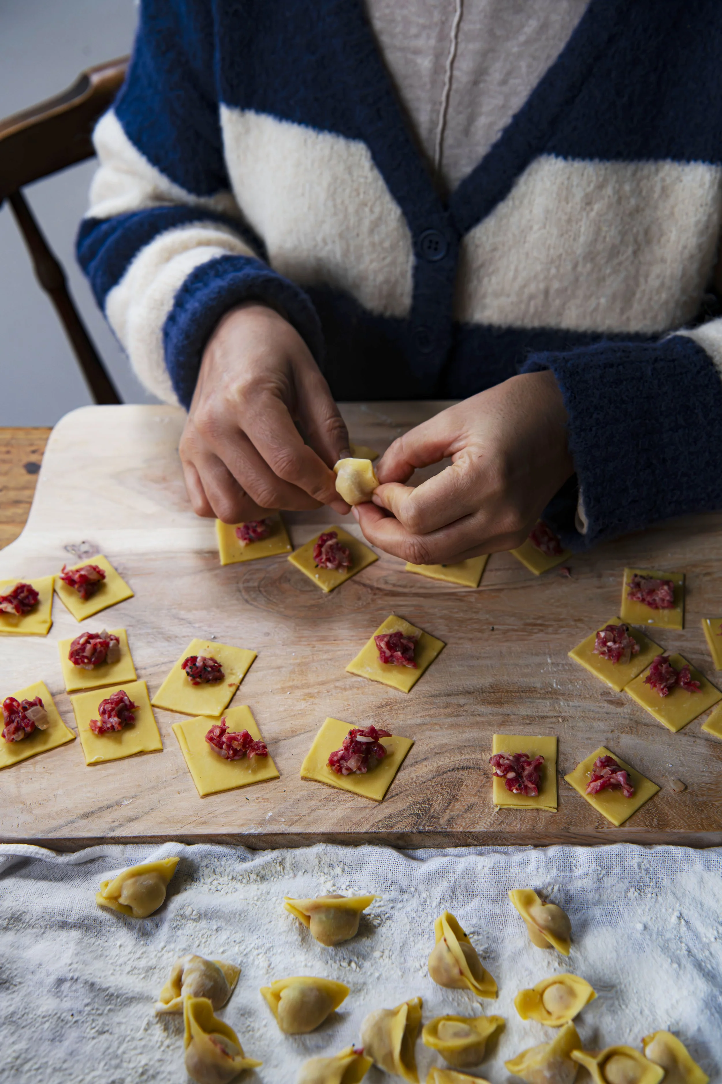 One of my favourites this time of year is dushbere, tiny Azerbaijani dumplings filled with minced meat, onion, dried mint, and a touch of spice. They’re folded into delicate little parcels and simmered in a saffron scented broth. These miniature dumplings are a true tummy warmer. There’s a saying that a skilled cook can fit ten or more dushbere in a single spoon. I have to admit, I have a way to go before reaching that level. If I can manage four or five, I count it a win.